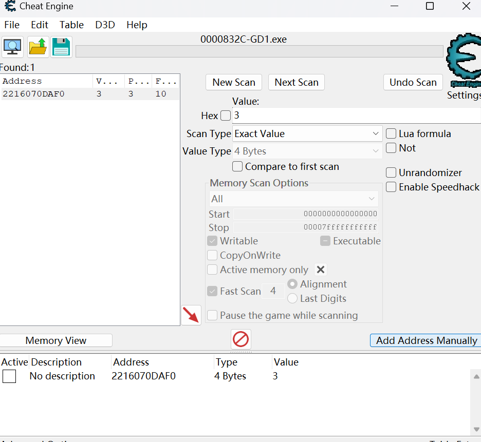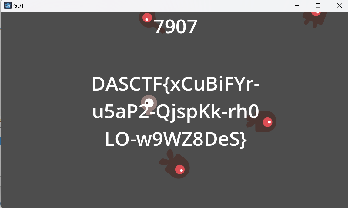 发现分数到7906的时候会触发什么东西,于是试一试。使用cheat engine找到分数的内存然后修改(可以直接写逆向脚本的,因为一开始没注意godot引擎,所以用CE改高分看能不能获得flag,最后还是用CE收尾吧)