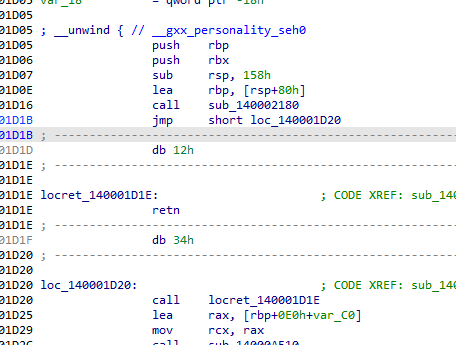 1D1E直接返回,明显花指令,直接将下面的 call ....1D1Enop掉
